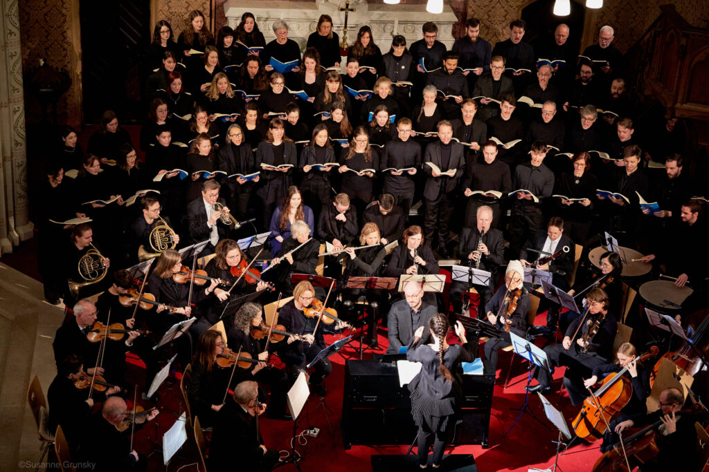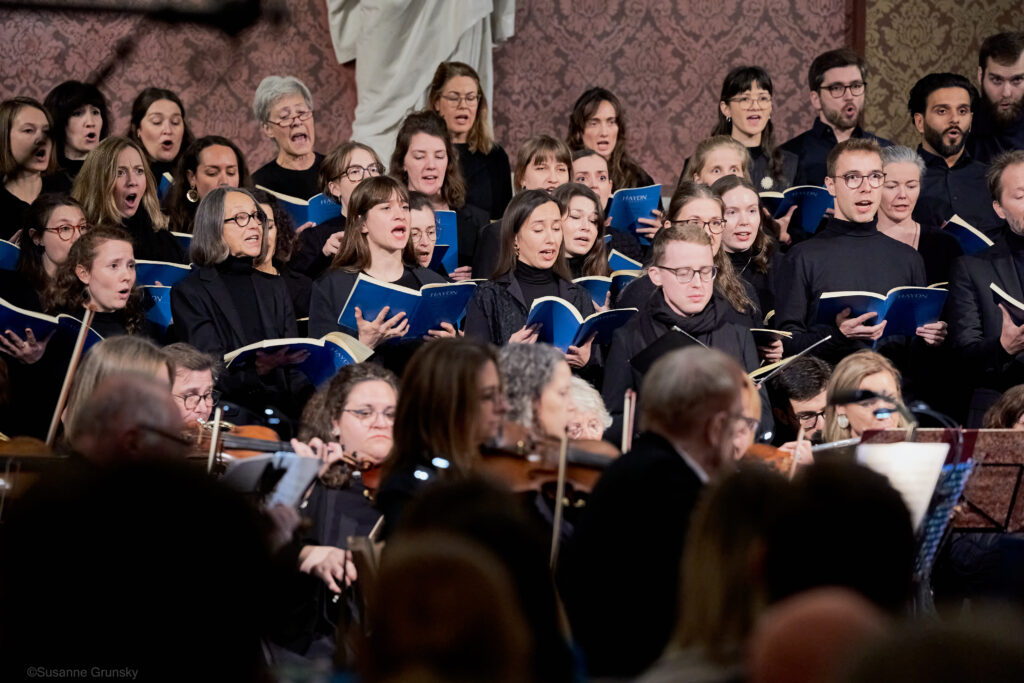 Seit dem Sommer haben wir – locker zunächst, mit Fokus auf Intonation, dann intensiver und mit voller Aufmerksamkeit auf Musikalität – an den vielen Chorstellen in Haydns Werk geprobt. Der Rahmen ist festlich und wir diesmal ganz in schwarz, ohne die sonst üblichen goldenen Akzente. Aufregung mischt sich in die Vorfreude: nur nicht reinsingen an den falschen Stellen, dafür alle Einsätze erwischen, noch schnell ein Rettungszuckerl für den Hustenanfall einstecken.
